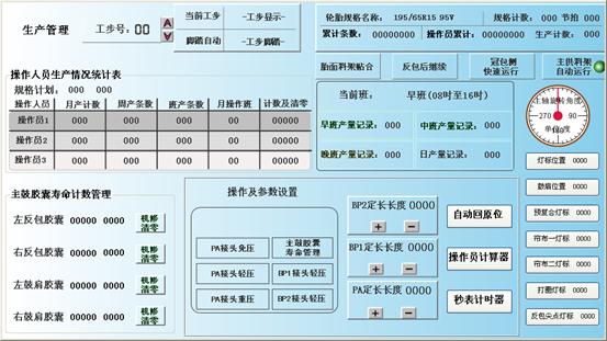 如上图为参数设置画面,画面中有轮胎成型的全部工艺参数的设置。